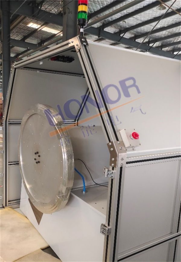 該設備為電機連接主軸,在主軸端裝有工作轉盤,測試的CT產品固定到工作轉盤上,啟動電機,電機帶動主軸旋轉,在預定的轉速下進行產品的各項性能測試。
